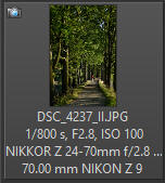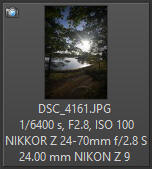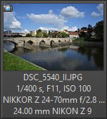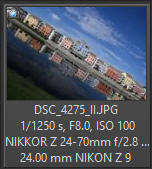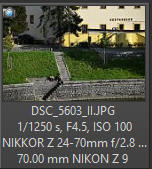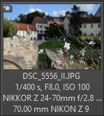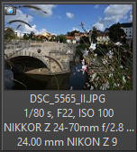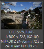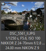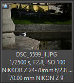 V ostrosti a přenosu kontrastu by podle křivek měl být nový objektiv znatelně lepší na ohnisku 70 mm. Na 24 mm nejsou rozdíly nijak výrazné. Nastavení fotoaparátu Nikon Z9 pro všechny zde publikované snímky, není-li uvedeno jinak: Fotoaparát Nikon Z9, zpracování
